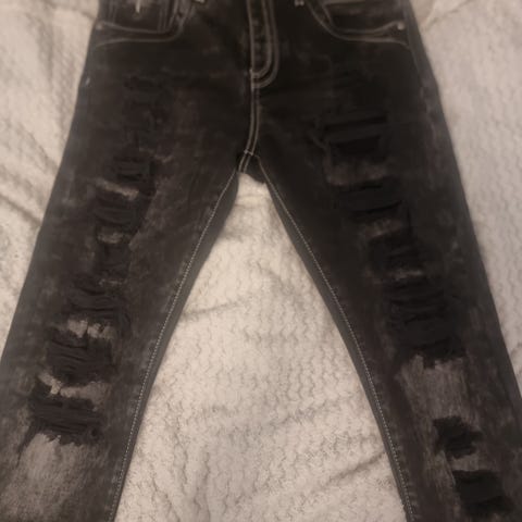 Myydään Tosi hyvässä kunnossa, musta harmaat farkut. Pari kertaa käytetyt.