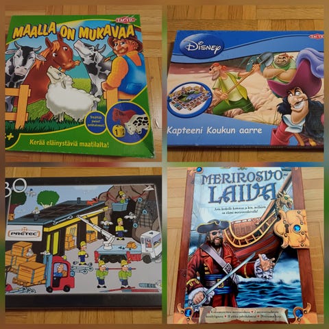 Kaikki pelattavassa kunnossa, pientä käytön jälkeä näkyy siellä ja täällä (lähinnä laatikoiden kulmissa), kaikki osat tallessa.