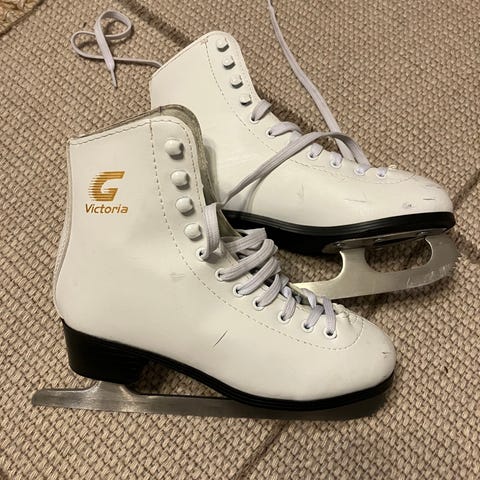 Ingrid lasten luistimet, koko 36, väri valkoinen. Pohjallisen sisämitta 24cm. Mukaan itse ommellut teräsuojat