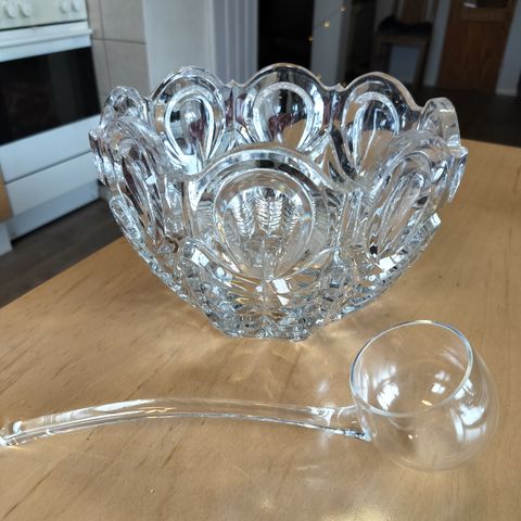 Sivustassa opaalilasia, jossa leikattu köynnös-kuvio. Nyppyreunat ja pohjassa ristikko-kuvio.