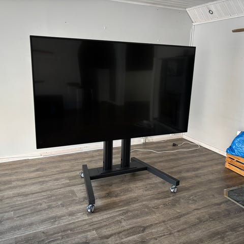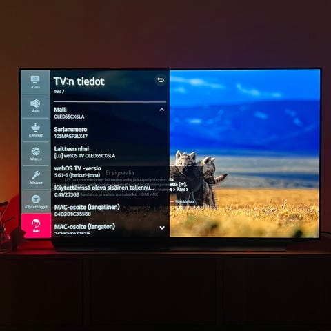 Kyseessä on LG OLED Objet Collection Posé -malli, joka tulee mukana tulevalla korkealla jalustalla. Erillistä TV-tasoa ei tarvita, vaan television voi sijoittaa vapaasti huoneeseen. Muotoilu on hieno joka suunnasta, joten tämä näyttää hyvältä myös keskellä huonetta.