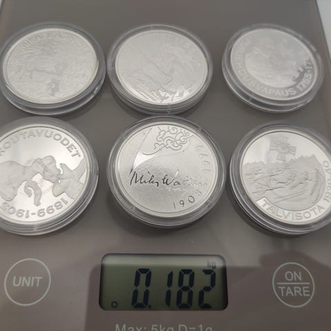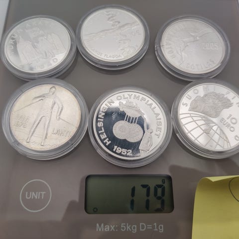 Ulkomaalasia hopea kolikoita