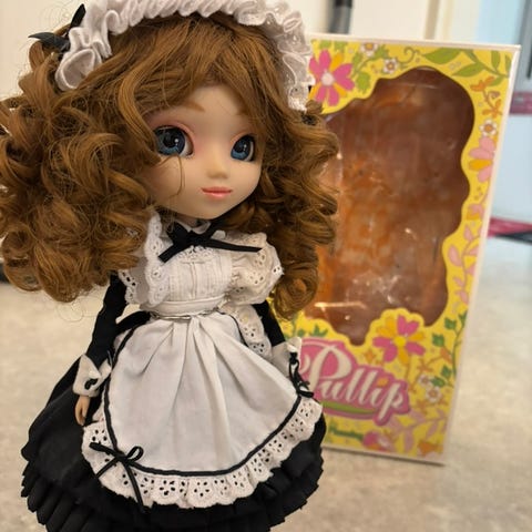 Myynnissä Pullip Dilettante -nukke sekä vaate- ja kenkäsetti.