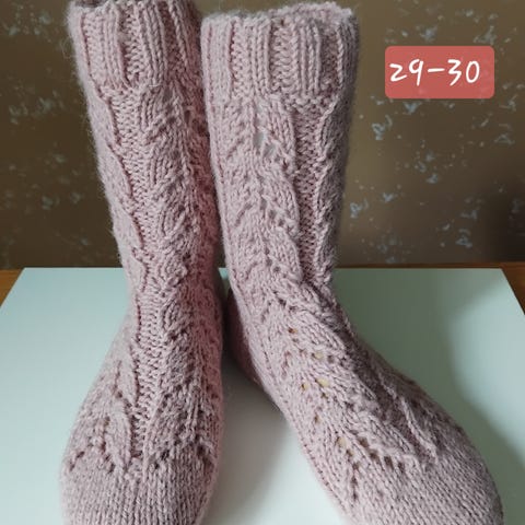 Uudet, kauniit punaiset pitsikuvioiset villasukat. Pohjan pituus n.19cm, hyvät n.30 koon jalkaan?
