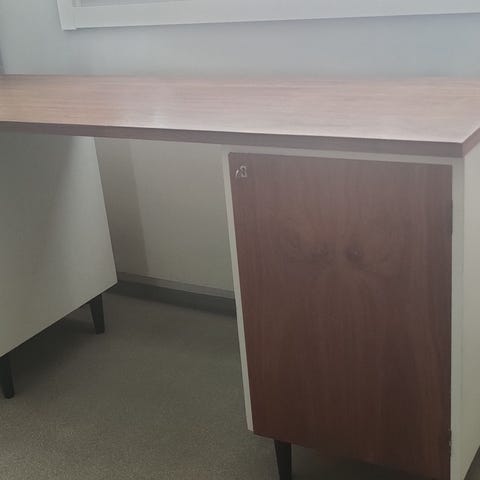 Vanha teak työpöytä / kirjoituspöytä 60-luvulta. Eli pöytälevy, laatikosto ja kaappi. Laatikostoa ja kaappia voi siirrellä ja käännellä sivusuunnassa tilan mukaan. Kansi lasketaan vain päälle kuten viimeisestä kuvasta näkyy. Kohtuullisen kevyet kantaa ja mahtuvat hissiin.