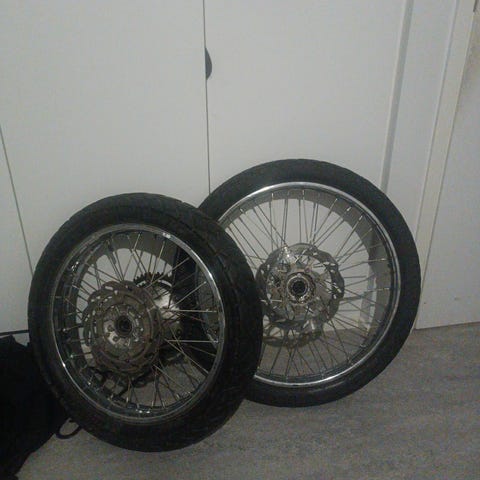 Moottoripyörän vanne 16x3 tuumaa ja pinnat.