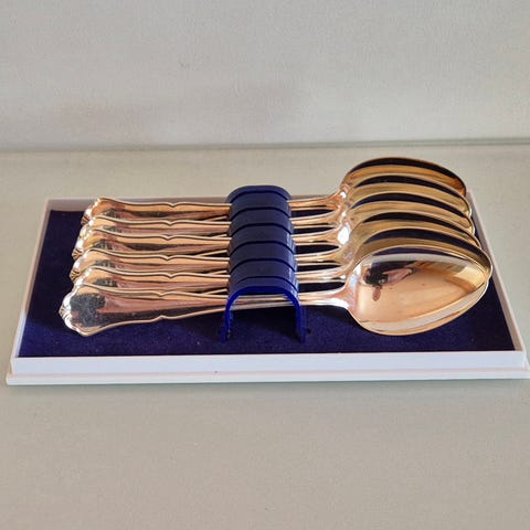 6 kpl Chippendale H813 ja yksi vanha 13L, 13 luodin hopealusikka. Kahvilusikat, pituus 11,5cm 6,kpl ja yksi erilainen 12cm. Yhteispaino 84,7gr. Ullanlinnasta voi noutaa tai Matkahuollon paketti +7€