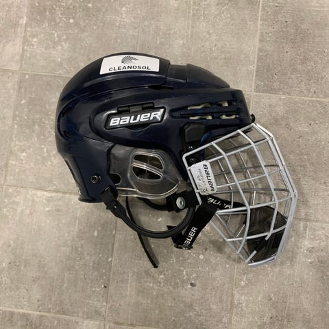 Bauer jääkiekkokypärä mustassa värissä. Kypärä on suunniteltu jääkiekon harrastamiseen ja tarjoaa suojaa pääalueelle. Varustettu metallisella kasvolla, joka suojaa kasvoja pelin aikana. Kypärä on valmistettu kestävästä materiaalista ja sisältää säädettävät hihnat istuvuuden varmistamiseksi.