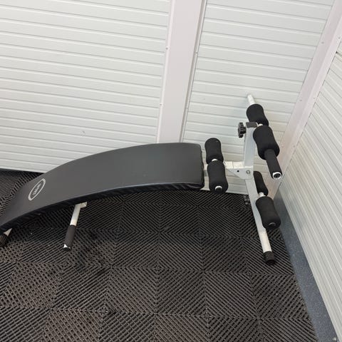 Gym-Tech vatsapenkki, jossa on säädettävä selkänoja ja pehmustetut jalkatuet. Penkki soveltuu monipuoliseen lihaskuntoharjoitteluun ,kotikäyttöön.