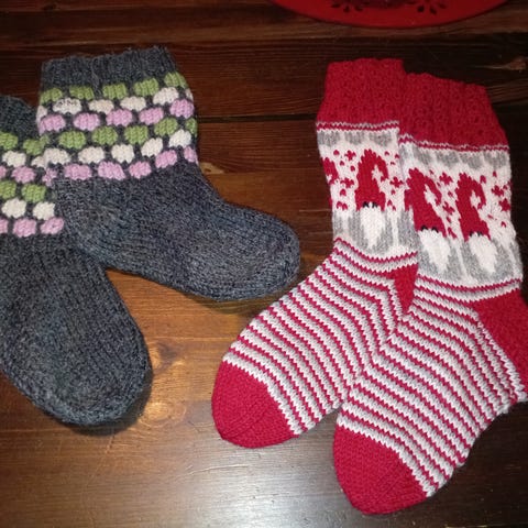 Noin 16cm jalkaan sopivat villasukat. Nämä ovat äitini neulomat❤️
