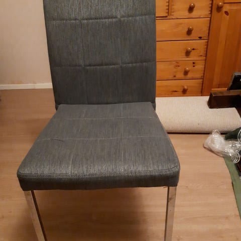 6kpl ruokaryhmän tuoleja, valkeat irroitettavat pesunkestävät kangaspäälliset, pesu jää ostajalle, muutama kpl taisi olla violetteja vaihtopäällisiä, Etsin ne ostajalle mukaan. Hyvät tuolit, eivät vain enää sopineet uuden ruokapöydän kanssa.