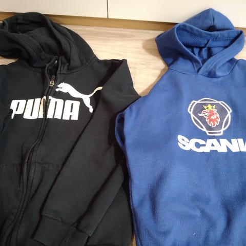 Setti sisältää kaksi harmaata hupullista paitaa ja sinivalkoisen pitkähihaisen t-paidan, jotka on suunniteltu 120 cm kokoisille pojille. Hupparit ovat Peuhu ja Duudsonit T-paita.