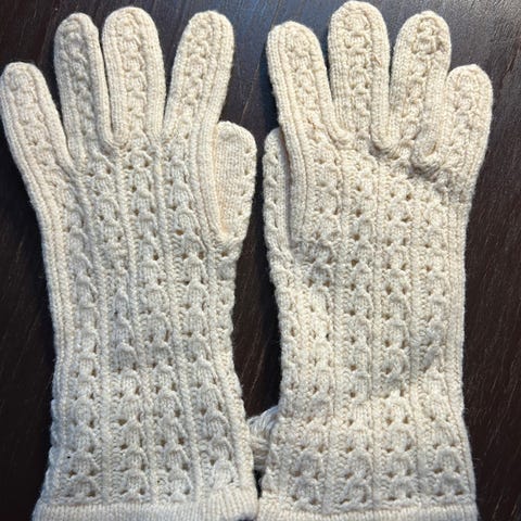 Vaaleanharmaat lämpimät sormikkaat, pit. 24, lev. 9. Nouto Vallilasta.