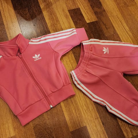 Adidaksen verryttelyasu koossa 3-6kk / 68. Ollut paristi päällä sisällä tai rattaissa. Erinomainen kunto. Soveltuu esim. lahjaksi kuntonsa puolesta. Sävy kirkas pinkki. Takki käytettävissä pidempään. Meillä oli käytössä vasta 6kk jälkeen.