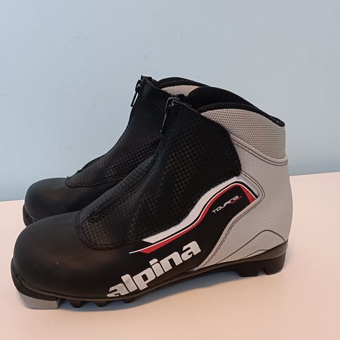 Alpina T5 jr plus perinteisen hiihdon monot, Rottefella NNN kiinnityksellä. Hyväkuntoiset, pientä nukkaa läpässä ja logot kai kuluneet, ellei olleet tuollaiset jo uutena. Pohjallisen pituus noin 22,9 cm. Vain nouto.