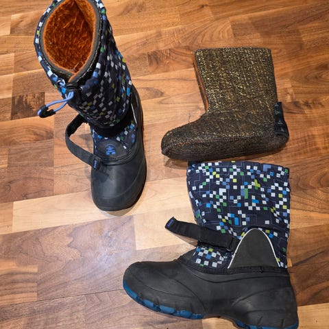 Myydään kahdet Kamik lasten talvikengät, koko 5 eli noin koko 37. Kengissä on irrotettava vuori. Olleet yhden talven molemmat käytössä. Hinta 15 euroa yhdeltä parilta. Eläimetön talous. Vain nouto.