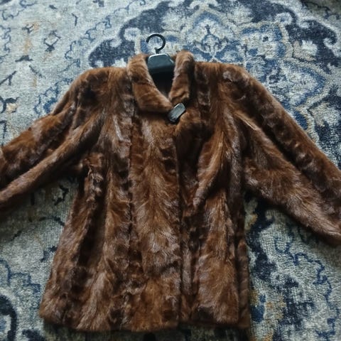 Tummanruskea/musta turkistakki. Naisten koossa M/L. Takki on valmistettu turkismateriaalista, epäilen olevan minkkiä. Viestillä lisätietoa ja voin mittailla.