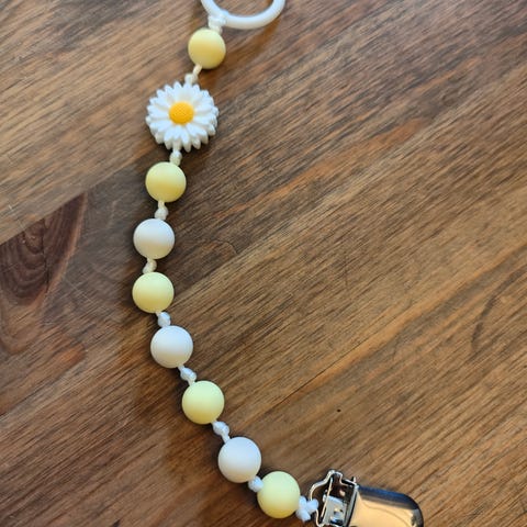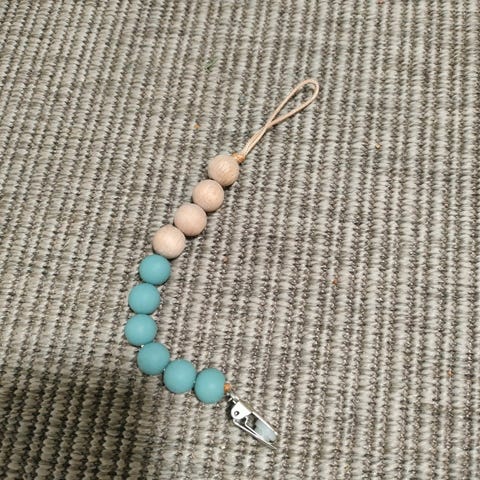 By Baby Bubbles tuttinauha, johon lisätty silikoninen rengas tutin kiinnittämistä varten. Hyvässä ja ehjässä kunnossa.