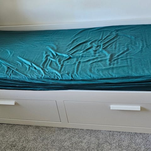 Valkoinen 80x200, levitettävä parisängyksi 160x200, mukana kaksi patjaa. Vähän käytetty.