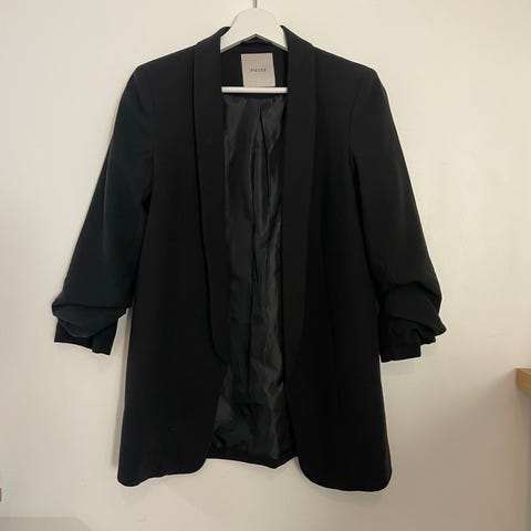 Myydään Pieces tummansininen bleiseri koossa S. Hihoissa rypytys ja vajaamittaiset. Pienelle käytölle jäänyt, ollut päällä 1-2 kertaa muutaman tunnin ajan. Siisti kunto. Sama malli ja väri edelleen myynnissä. Väri on klassinen tummansininen (navy).