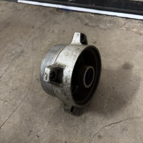 Takajarrukilpi johon joko hapettunu tai hiekkapuhaltunut reikä. Näkyy kuvissa.