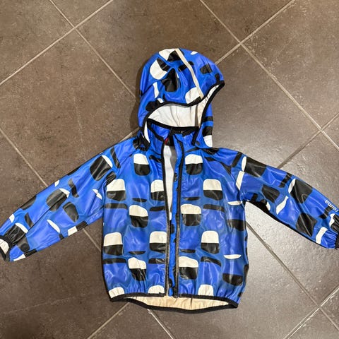 Siisti sadetakki. Keltainen väriltään, jotein jotain tummentumaa saattaa löytyä.