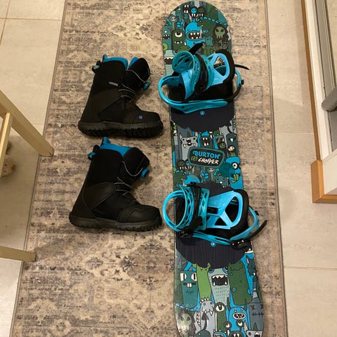 Lasten hyväkuntoinen Burtonin lumilautasetti. Lauta+ siteet+ monot. Monoissa irrotettava pohjallinen, joka antaa kasvuvaraa kun jalka kasvaa.