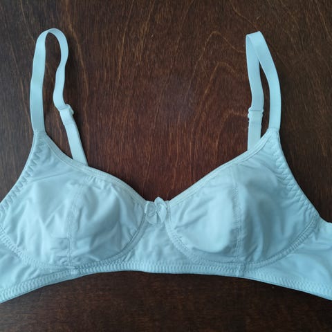 Tyttöjen valkoiset puuvillaiset rintaliivit kokoa 164 cm, Finnwear. Säädettävät olkaimet, takana hakaskiinnitys kolmella eri säätövaihtoehdolla. Ei kaaritukia. Siistikuntoiset. Toiset melkein samanlaiset myös myynnissä.