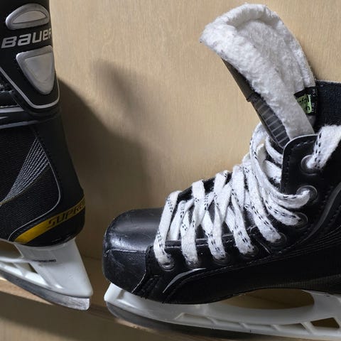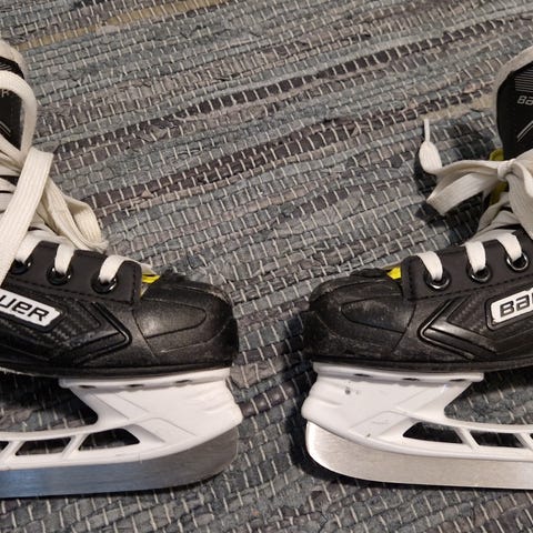 Lasten jääkiekko luistimet koossa 20, musta ja valkoinen väri. Luistimet on suunniteltu jääkiekkoiluun ja sopivat lapsille.