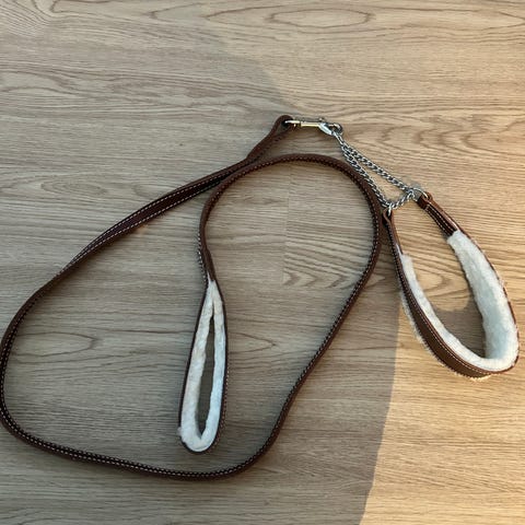 Myydään nahkainen talutushihna ja panta.