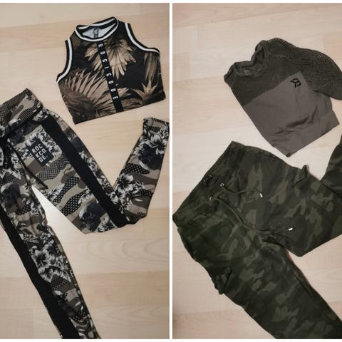 Treenivaatepaketti sisältää treenivaatteita koossa xs-M, joita käytetty samaan aikaan: kaksi No Bull paitaa (näitä käytetty vain kerran), Casall pitkä treeni toppi, mikä rypytetty sivuilta kivasti, Niken teknisen t-paidan, H&M paljon käytetyn lilan Topin, kahdet Niken urheiluliivit koossa M, kolmet Niken urheilutrikoot koossa xs-s ja yhdet Better Bodies löysemmät trikoot, joita käytetty vähän. Eläimetön ja savuton koti. Nouto Haukkala.