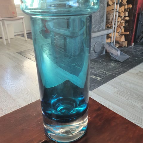 Myydään Riihimäen lasin Rondo -maljakko, suunnittelija Nanny Still, signeerattu. Korkeus noin 19 cm. Suuaukolla lohkeamia sekä pieni hiushalkeama yläosassa.