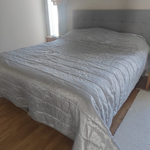 Myydään uudenveroisessa kunnossa oleva Luhta Pilvi -päiväpeitto, joka on kevyt ja ajaton. Päiväpeitossa on hienostunut himmeä kiilto. Mukaan myös kaksi tyynyliinaa. Päiväpeitto on pesty, eikä ole lemmikkejä.