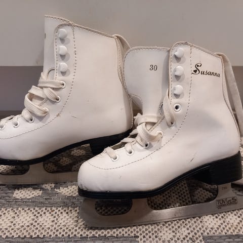 Kahdella lapsella käytössä olleet Aliisa-luistimet koossa 30. Hyväkuntoiset luistimet, muutamia naarmuja löytyy.
