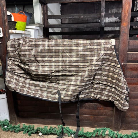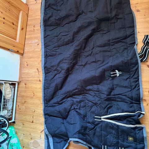 Musta, muutaman kerran käytetty ja puhdas pesulassa pesetetty talli toppaloimi. 200 gramman täyte. Hieno. Koko 145.