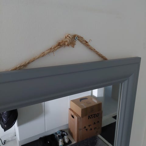 Myydään hyvässä kunnossa oleva valkoinen sisustuspeili. Takapuolella merkki ”Poka Finland”.