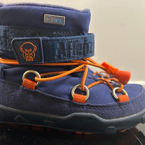 Affenzahn talvikengät/talvisaappaat. Koko 25. Kengissä villaa sekä kengän varressa että sisällä. Olen laittanut näihin villahuopapohjalliset niin lapsi pärjännyt hyvin talvella rapsakassa pakkasessakin ja silti saanut tepastella mukavasti pehmeissä kengissä. Suositusten mukaiset kengät.