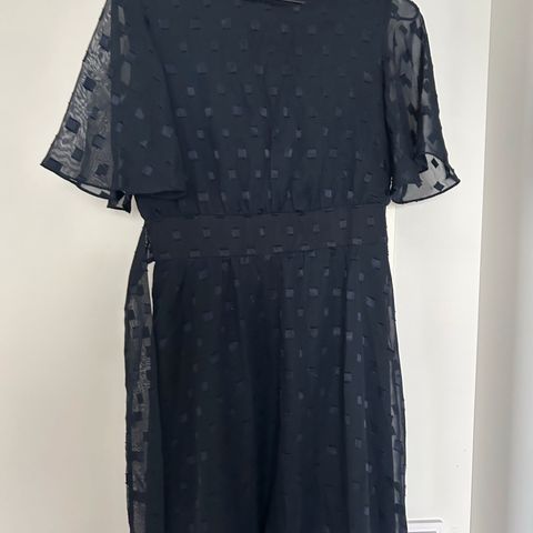 Pituus hartialta n. 153 cm (eli vaatii pitkät jalat tai korkkarit), vyölenkkien kohdalta ympäri n. 86 cm (eli kiristys nauhoilla), kainalosta n. 90 cm. Huom. ei vetoketjua, joten ei mene kovin rintavalle/harteikkaalle! Espirit, koot lapussa: D 34, UK 8, I 38, F 36.