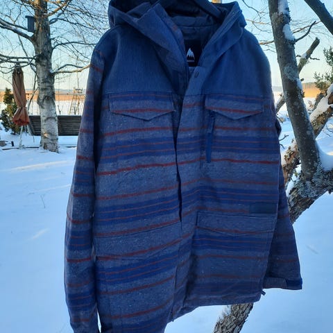 Burton Takki ruskeassa värissä, miesten koko L. Ulkotakki soveltuu erilaisiin sääolosuhteisiin ja tarjoaa suojaa ulkoiluun.Vetoketjussa jotain häikkää.....