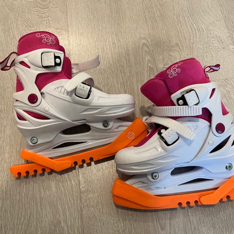 Revolution Rookie 4 lasten luistimet, koko 29-32. Värit valkoinen ja pinkki. Käytetty luisteluun. Luistimissa on säädettävät hihnat ja pehmustettu sisäosa mukavuutta varten.