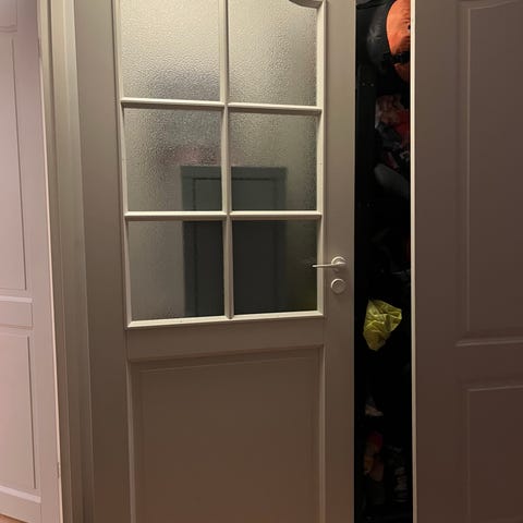 Ovet hyvässä kunnossa. Leveys 94cm huulloksineen, korkeus 204cm.