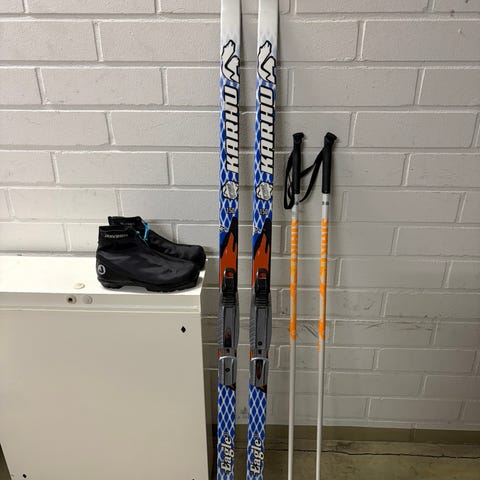 Myydään muutaman kerran käytetyt pitopohjasuksipaketti. Sukset 147 cm, Alpina-monot kokoa 35 (sisäpohja 23 cm) ja sauvat 115 cm.