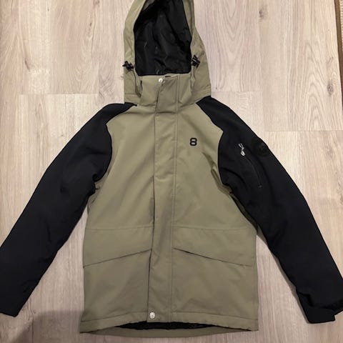 Käyttämätön ja lämmin laskettelutakki, jossa kiristysnyörit takin alaosassa sekä lumilukko.