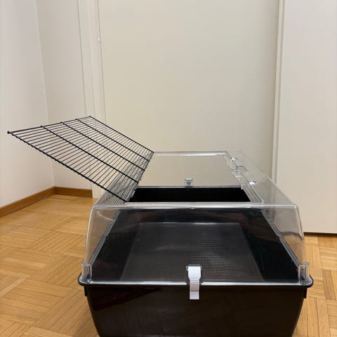 Ferplast Duna Multy -häkki on mitoiltaan 71,5 (pituus) x 46 (leveys) x 31 (korkeus) cm. Häkissä on kätevä avattava yläosa, jonka ansiosta lemmikin hoitaminen on helppoa.