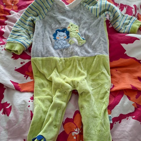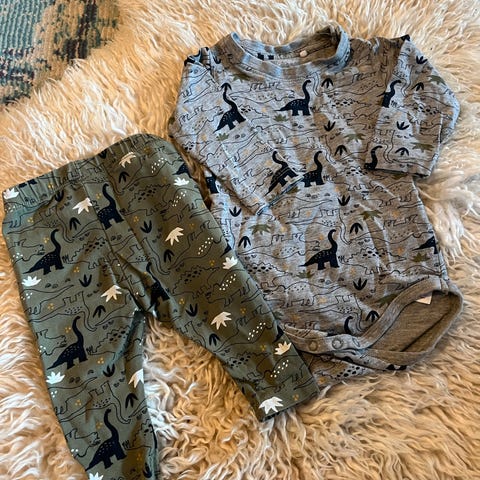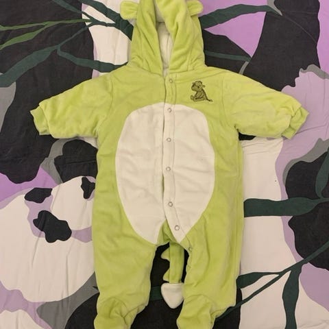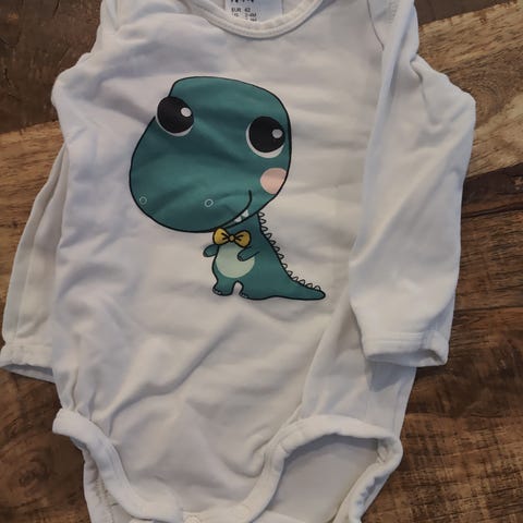 Peuhu-merkkinen dinosaurus kuvioitu asu koossa 62.