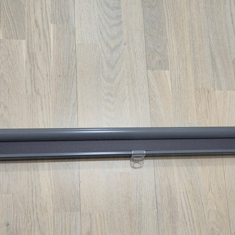 Hyväkuntoinen harmaa Ikean Hoppvals kaihdin. 60×155 cm. Kiinnikkeet mukana (ei ruuveja).