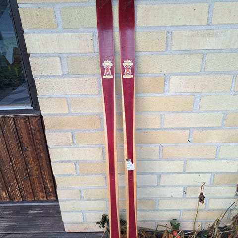 Perinteiset puurunkoiset maastohiihtosukset. Harjun Suksitehdas, omistaja “A. Valkonen”. Sukset ja sauvat ovat ikäänsä nähden siistit. Pala suomalaista talvihistoriaa. Pituus n. 200 cm.