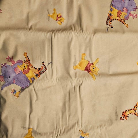 Hakusanat: Nalle Puh, puuvillakangas, puuvillaa, kangas, verhokangas, pussilakana, tyynyliina, verhot, lastenhuone