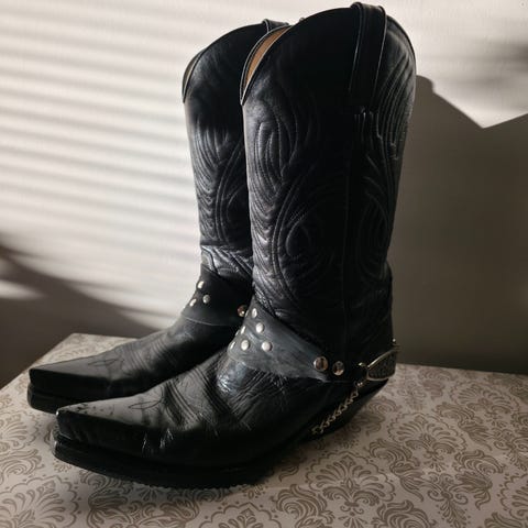 tästä myyntiin laadukkaat ja näyttävät miesten bootsit. Pientä käytönjälkeä kärjissä, mutta ei mitään sen suurempaa. Koko 46