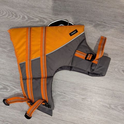 Zoofari keltainen huomioliivi valoilla S. Pienen koiran heijastinliivi. Punaiset led valot. Kaksi vilkkuvaa nopeutta ja yksi palaa jatkuvasti. Tarrakiinnitys millä saa säädettyä ympärystä. Myös kaulassa tarrallinen säätö. Jaloille kumilangat. Hyväkuntoinen. Esimerkiksi mäyräkoiralle hyvä.